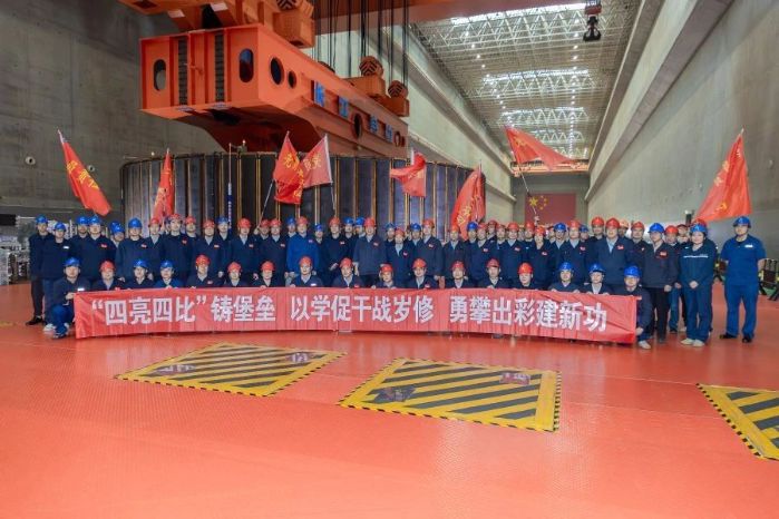▲長江電力檢修廠歲修現(xiàn)場“四亮四比”黨建品牌活動啟動儀式