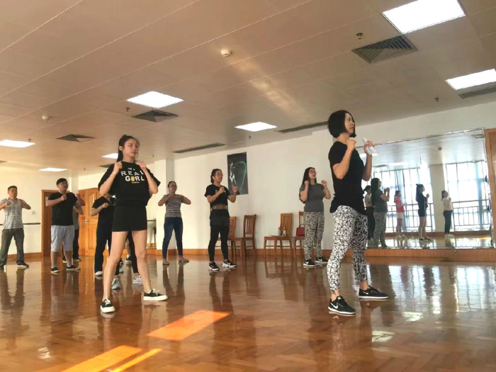 8月16日上午,三峽基地公司首套工間操在活動中心開展正式開展教學,來自各單位、機關部門選派人員參加了學習,回去之后,他們將組織機關人員共同學習。