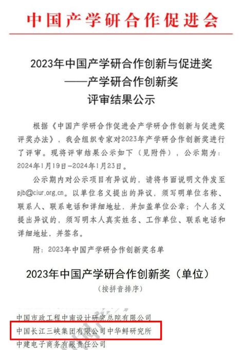 本網(wǎng)訊(胡雪辰 葉孜)近日,中國(guó)產(chǎn)學(xué)研合作促進(jìn)會(huì)公示2023年中國(guó)產(chǎn)學(xué)研合作創(chuàng)新與促進(jìn)獎(jiǎng)評(píng)審結(jié)果,其中三峽集團(tuán)生態(tài)工程中心長(zhǎng)江生物多樣性研究中心中華鱘研究所(以下簡(jiǎn)稱中華鱘研究所)榮獲“產(chǎn)學(xué)研合作創(chuàng)新獎(jiǎng)”,長(zhǎng)江生物多樣性研究中心主任專業(yè)師黃桂云榮獲“產(chǎn)學(xué)研工匠精神獎(jiǎng)”。