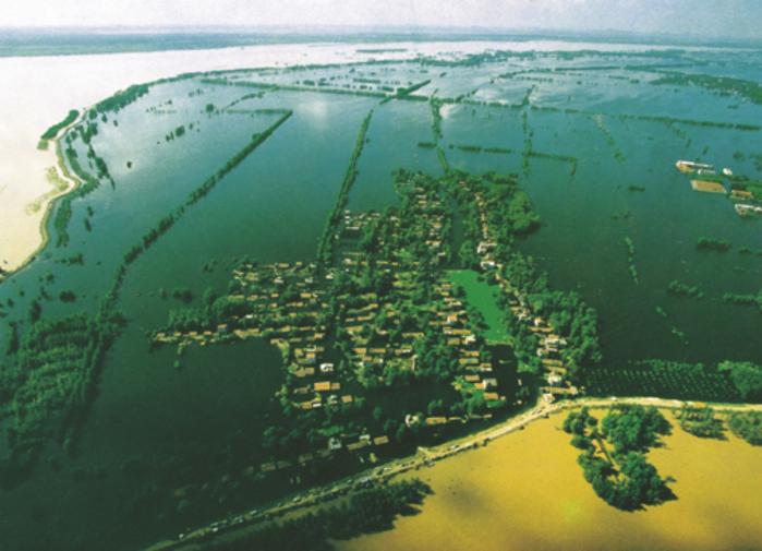 1998年長(zhǎng)江發(fā)生洪災(zāi)時(shí)被水淹沒(méi)的嘉魚(yú)縣鄉(xiāng)村簰洲灣