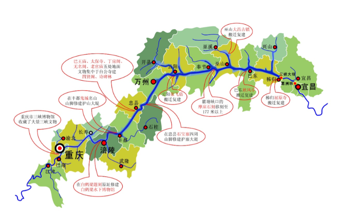 三峽庫區(qū)、壩區(qū)文物保護(hù)示意圖
