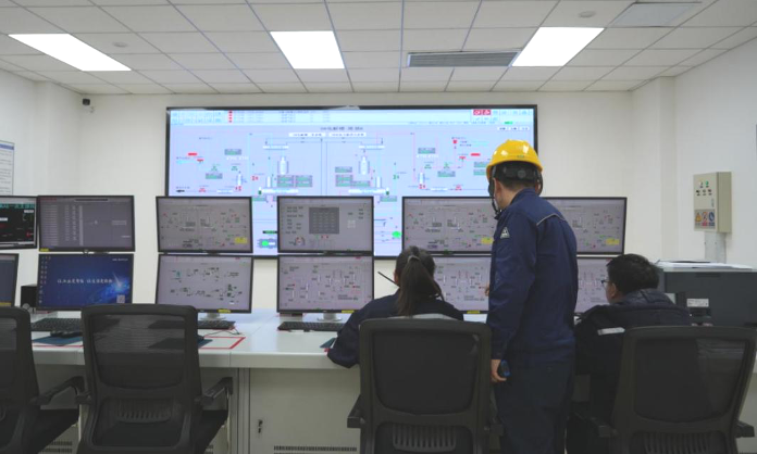 ▲ 納日松光伏制氫廠中控室內(nèi),工作人員通過智慧大屏,實(shí)時(shí)監(jiān)控綠氫生產(chǎn)全流程。攝影:王麗曼