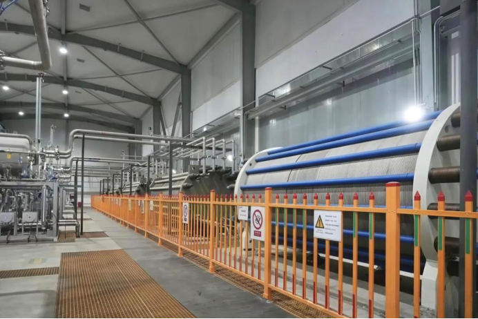 ▲ 納日松光伏制氫項(xiàng)目制氫車間內(nèi),單臺(tái)1000標(biāo)準(zhǔn)立方米/小時(shí)堿水電解槽高效運(yùn)行。該項(xiàng)目總產(chǎn)氫能力達(dá)15000標(biāo)準(zhǔn)立方米/小時(shí),年產(chǎn)能1萬噸高純綠氫。攝影:王麗曼
